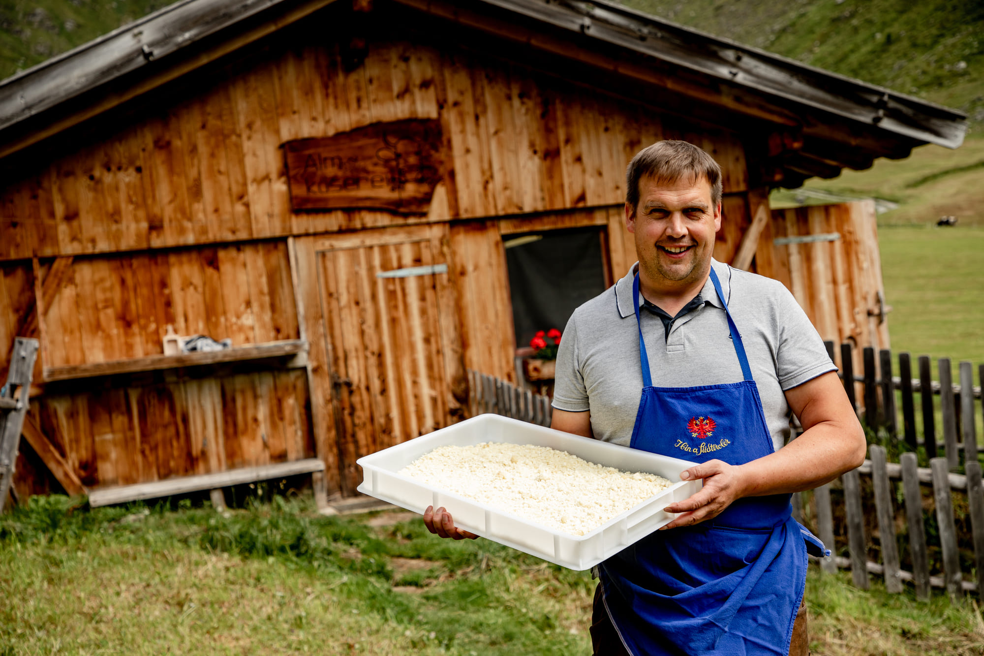 Hüttenwirt Simon betreibt mit Leidenschaft seine Almkäserei, in der unsere frische Almmilch zu verschiedenen Produkten verarbeitet wird. Gern kann man ihm bei der Arbeit über die Schulter schauen und einen Blick hinter die Kulissen der Käseherstellung werfen. Verschiedene Käsesorten, sowie Butter, Joghurt und Buttermilch werden aus der Milch unserer Almkühe hergestellt. Alle Produkte können Sie selbstverständlich direkt vor Ort verkosten oder kaufen.